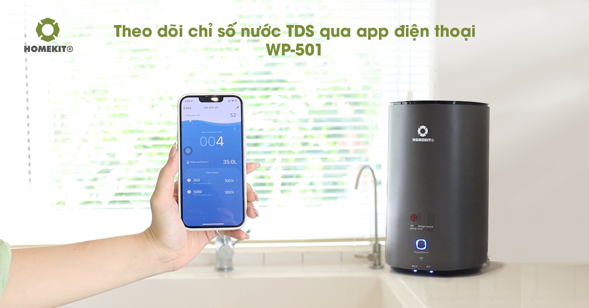 Sản phẩm máy lọc nước để bàn WP-501 là một trong số sản phẩm được tích hợp công nghệ kết nối app. Với chức năng kết nối thông qua app, với máy lọc nước WP-501, khách hàng có thể theo dõi chỉ số chất lượng TDS (chỉ số chất rắn hoà tan) thông qua ứng dụng trên smartphone.