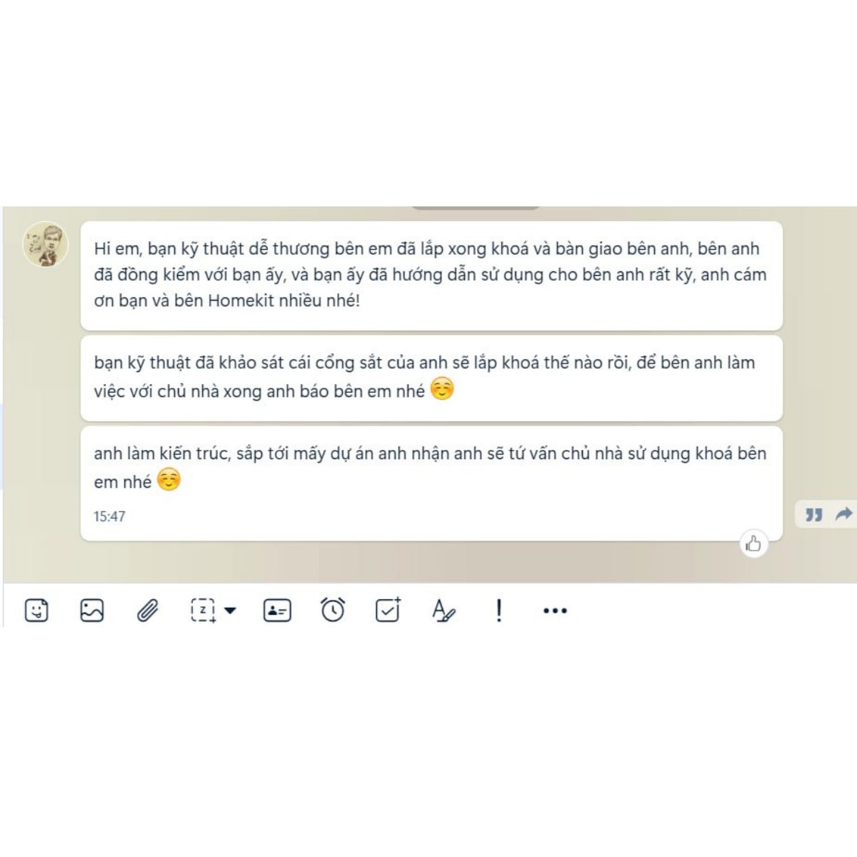 Ý kiến đóng góp của khách hàng chính là nguồn động lực để Khoá cửa thông minh HomeKit luôn cố gắng nỗ lực phát triển và tối ưu dịch vụ để đem đến sự tiện nghi, an toàn và hài lòng cho tất cả khách hàng đã tin dùng sản phẩm khoá cửa thông minh HomeKit!