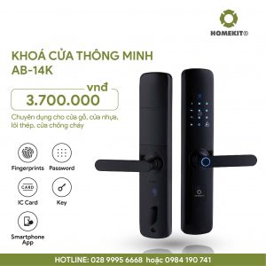 Bạn đang tìm kiếm một chiếc khoá vân tay cửa gỗ tích hợp nhiều tính năng và được gia công bằng vật liệu cứng cáp? Hãy lựa chọn khoá vân tay điện tử chống cháy nổ AB-14K tại HomeKit. Dòng sản phẩm đem đến cảm giác sang trọng, cao cấp cho căn nhà. Không chỉ là khoá cửa bình thường, khoá tại HomeKit còn đem đến những tiện ích nổi trội cho người sử dụng. Hãy cùng tìm hiểu chi tiết dòng sản phẩm cao cấp ở đây nhé!
