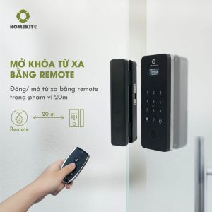 - Remote điều khiển đóng/mở chốt khoá từ xa, có thể mở cửa cho người thân mà không cần di chuyển đến gần cửa